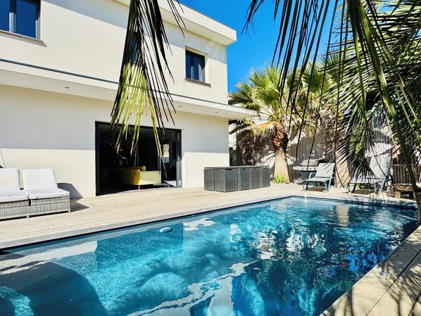 Outdoor pool, a heated pool - Modern Villa with Heated Pool – 50m from the Beach, Shops & Quiet Location (Agde)
