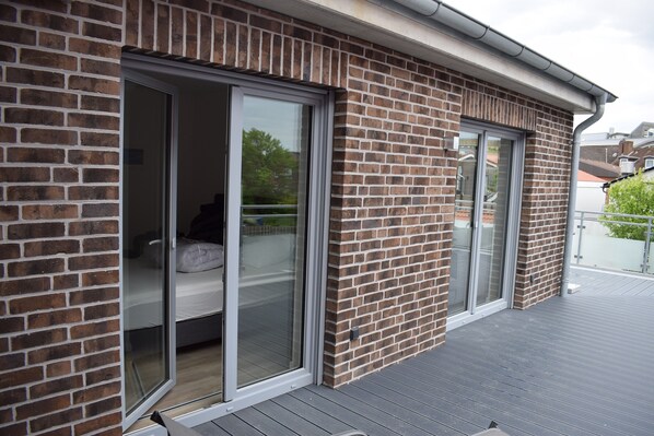 Sehr günstig gelegene und sehr ruhige, freundliche, helle und modern eingerichtete Wohnung mit einer Terasse die keine Wünsche offen lässt. Wie auf den Fotos Strandkorb, Sitz- und Liegemöbel vorhanden. Wir haben alles genutzt. Küche mit allem was man braucht ausgestattet. Bäcker und Restaurants in unmittelbarer Nähe, kleinerer Edeka fußläufig erreichbar. Wir würden wiederkommen und haben uns sehr wohl gefühlt.