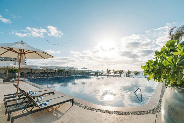 Travelers find a beachfront all-inclusive resort with poolside refreshments, ocean-view dining, and a full spectrum of vacation indulgences