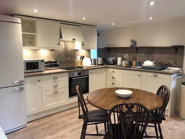 Kitchen: Breakfast Area, Electric Cooker, Microwave, Fridge, Freezer, Washer Dryer