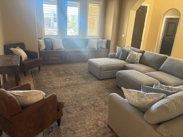All guestrooms at Enjoyable 4-bedroom house with community pool feature perks such as air conditioning and separate dining areas, in addition to amenities like desk chairs and dining tables.