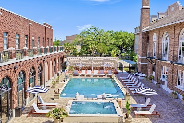 Inviting 2BR Escape in the Cultural Core of NOLA provides amenities like a gym and a hot tub.