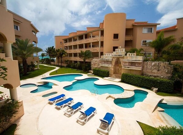 Outdoor pool, a heated pool - Quinta Del Sol, 3 Bedroom Beachfront Condo In Puerto Aventuras, Riviera Maya (puerto aventuras)