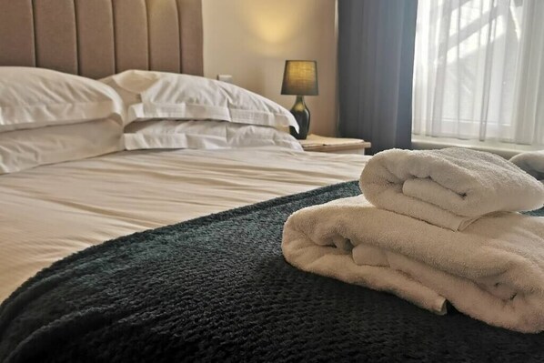 It is a beautiful self contained two bedroom flat that comfortably sleeps 4. It has a large lounge to the front with Smart TV and dining table. 2 large sofas provide sufficient seating for four.