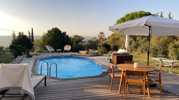 1 double room 60 cm - 1 double room 140 cm - 1 room 2 beds 90 cm x 2 = 180 cm - 1 bathroom, - 1 shower room, - 1 WC - kitchen - living room - private fenced pool and private garden 3000 m² to use of lexclusive