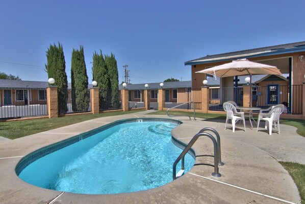 Guests relax by the outdoor pool or venture to nearby attractions with ease, thanks to convenient valet service and extended parking options at Stage Stop Inn.